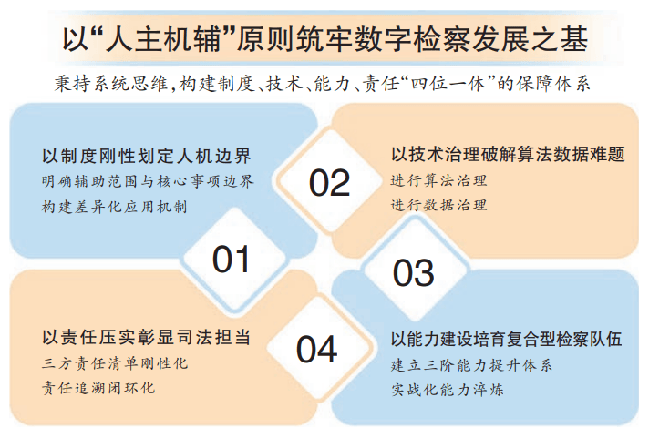 期间,最高人平易近查察院查察长应怯明白强调,人工智能辅帮司案,要立脚辅帮定位,查察案亲历性、决策从体性,凸起适用导向,让泛博查察官愿用、会用、用得好各类智能辅帮系统,实正通过数字化、智能化扶植为查察官处理问题、减轻承担。这一主要要求既锚定了智能手艺取查察工做融合成长的焦点标的目的,也明白了“人从机辅”是查察机关推进数字查察扶植必需苦守的根基准绳。当前,数字化海潮正正在深刻影响查察履职模式,已然成为“十五五”期间鞭策查察监视提质增效的主要计谋支持。自最高检摆设智能化扶植取试点工做以来,查察院做为首批试点单元,自动抢抓手艺变化机缘,鞭策智能辅帮办案系统深度嵌入审查、类案推送、文墨客成等焦点办案环节,正在提拔办案质效、规范司法行为等方面取得显著成效。取此同时,我们更需认识手艺东西属性取司法从体价值的辩证关系,以“人从机辅”准绳建牢数字查察成长根底,确保智能化扶植一直行稳致远。 (一)以轨制刚性规定人机鸿沟,苦守司法从体焦点地位。轨制是保障“人从机辅”准绳落地生根的底子支持,焦点正在于以刚性规范清晰界定“机械辅帮范围”取“人类从导范畴”,确保查察官把握标的目的、人工智能提拔效率,最终鞭策法令实践从效率提拔迈向质效跃升。